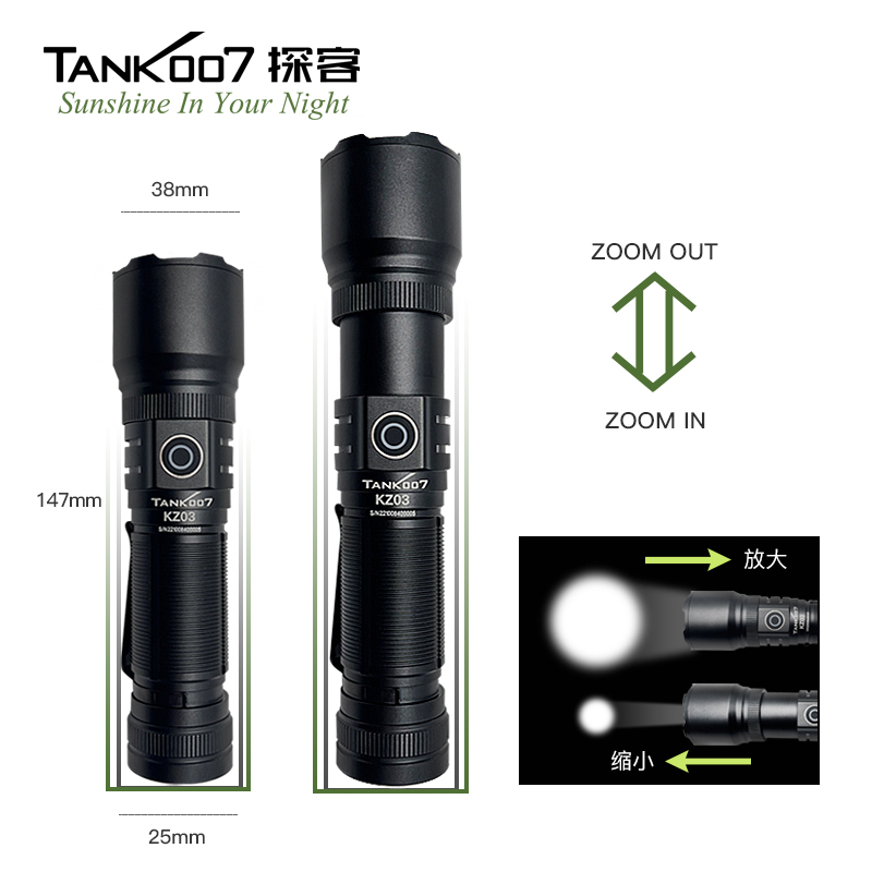 TANKO07強光手電筒戶外伸縮調焦手電LED直充遠射電筒KZ03