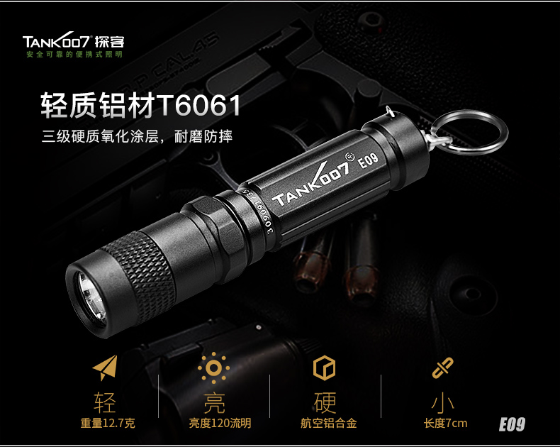 TANK007防狼手電led手電筒迷你進(jìn)口燈珠超亮聚光超亮防水E09探客