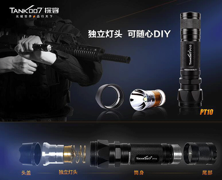 而TANK007的開發部有邀請特種部隊中的人員擔當顧問,根據這些顧問的建議來設計戰術手電以適合專業的用途。