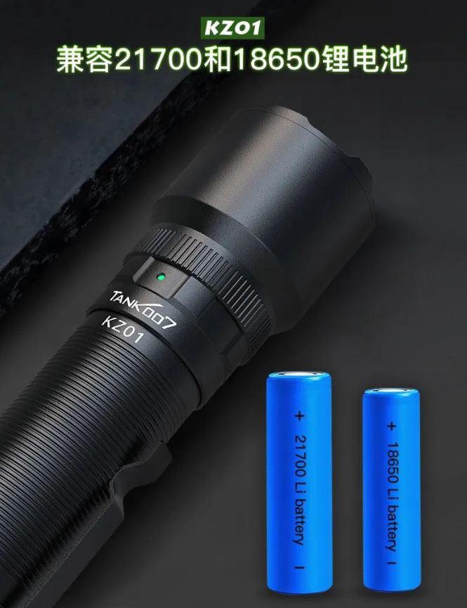 KZ01手電筒兼容18650和21700鋰電池,這使得用戶可以根據(jù)自己的需求選擇合適的電池類型,這種兼容性設(shè)計(jì)增加了手電筒的靈活性和便利性。